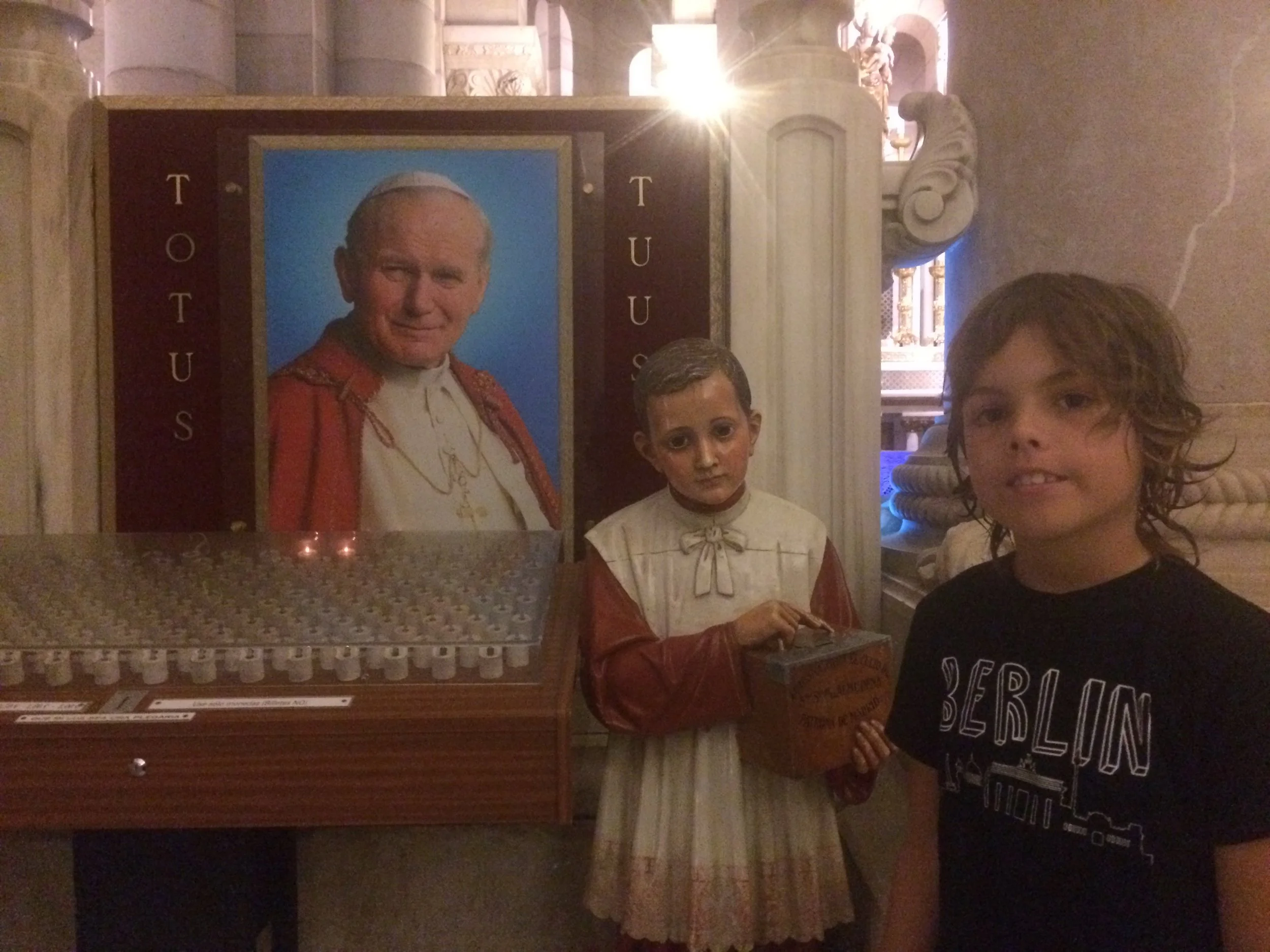 this is where they get the candle and where they put the money box but it was the wrong day to put the wishing candles down. This is a picture of the old pope - pope john.