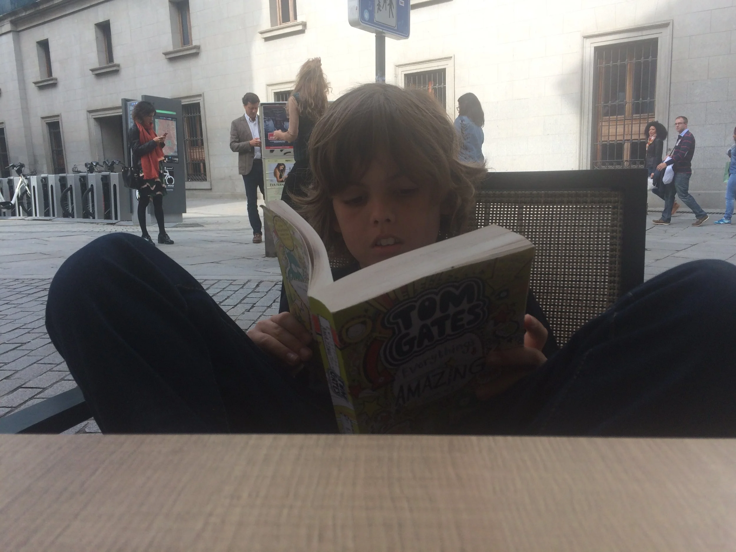 We have been eating out a lot. I sort of like the food, but I have been eating too much sugar and meat. They don't seem to eat fruit - just tapas - lots of chorizo, octopus, cuttle fish, squid and dad didn't tell the truth - and we ate pigs ears. Hugo was digging into pigs ears.