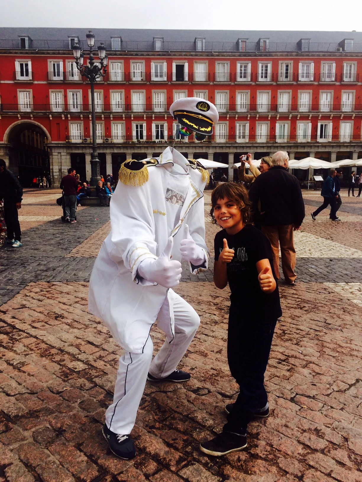 we were walking down a really old street called Plaza de Mayer and a man came up to me and we had a photo which was awesome because he was acting like an invisible sailor.