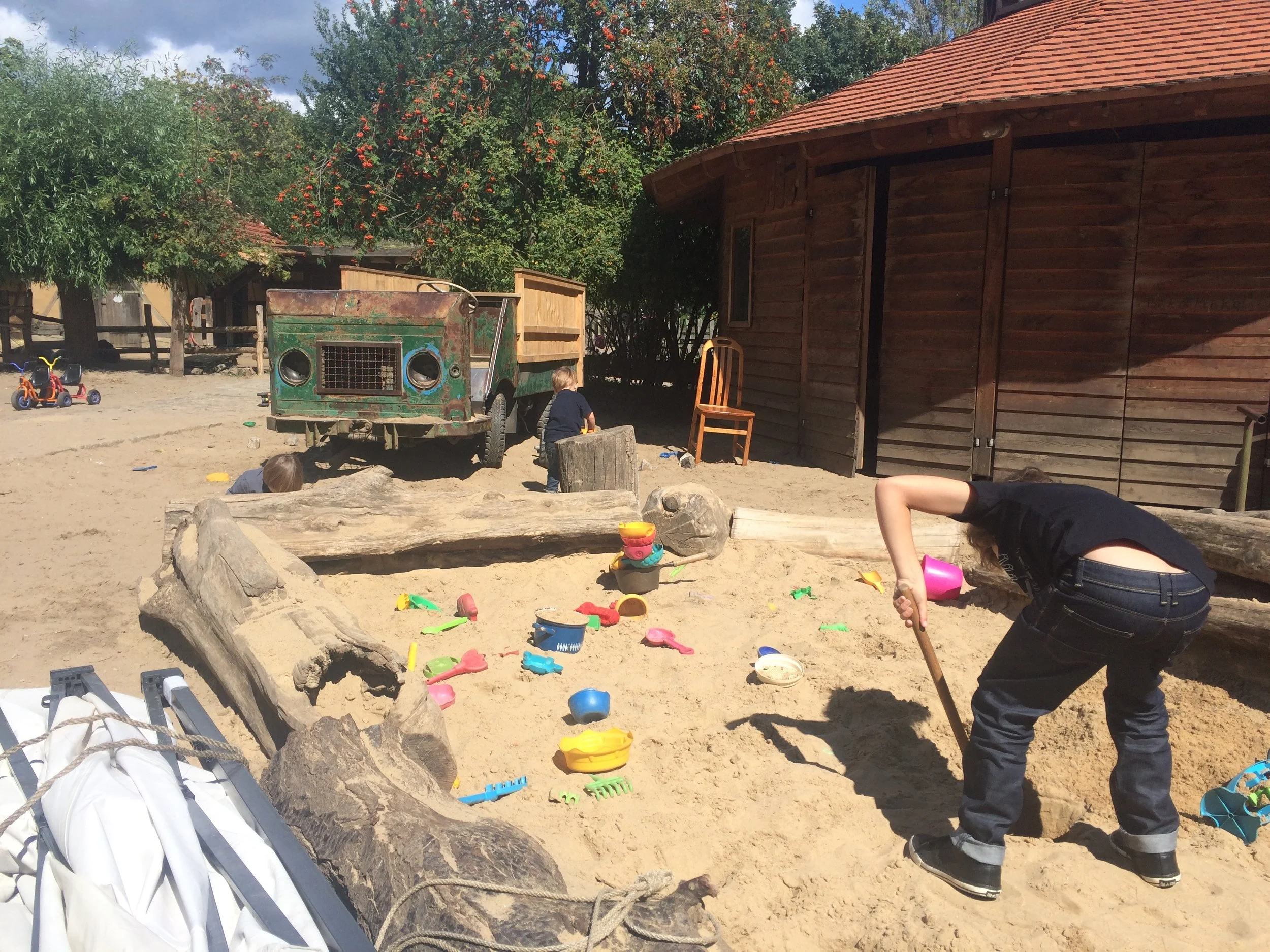 this is me making a trap hole. There are some kids my age making a huge tree houses. They has saws and nails. hugo loves going on the old rusty truck.i love playing soccer there and i sometimes I miss.