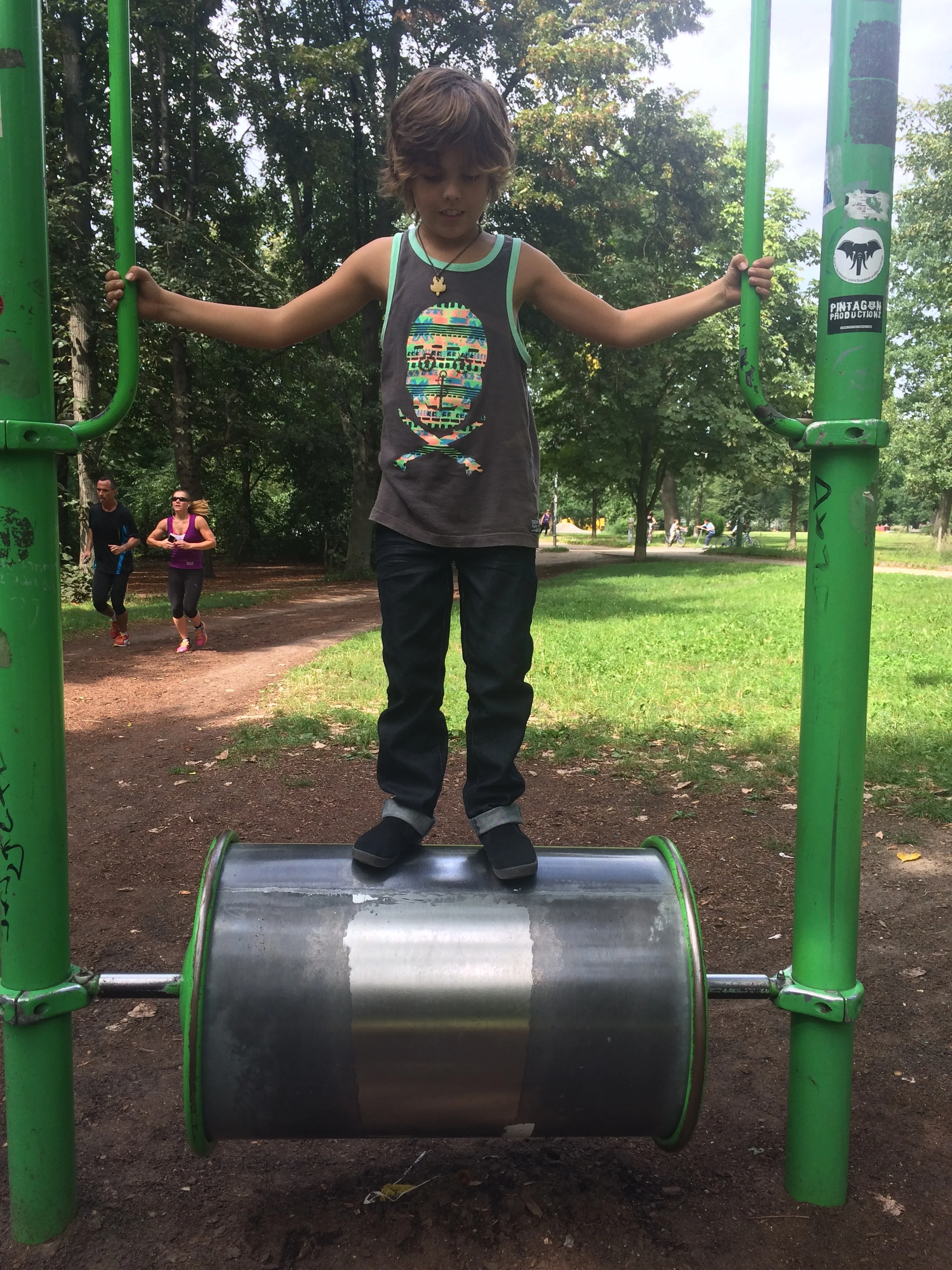 Its getting hot in Berlin now. I don't need to wear jeans anymore. We have been going to a lot of Parks. It was so hot yesterday that we had to go to the lake. It was freezing cold in the water. I only went in there for ten minutes because it was so cold. Hugo didn't like the water, so he went in the shallow end. Its been fun going to the parks. Hugo loves it so much that when we try to go home, we have to drag Hugo away.