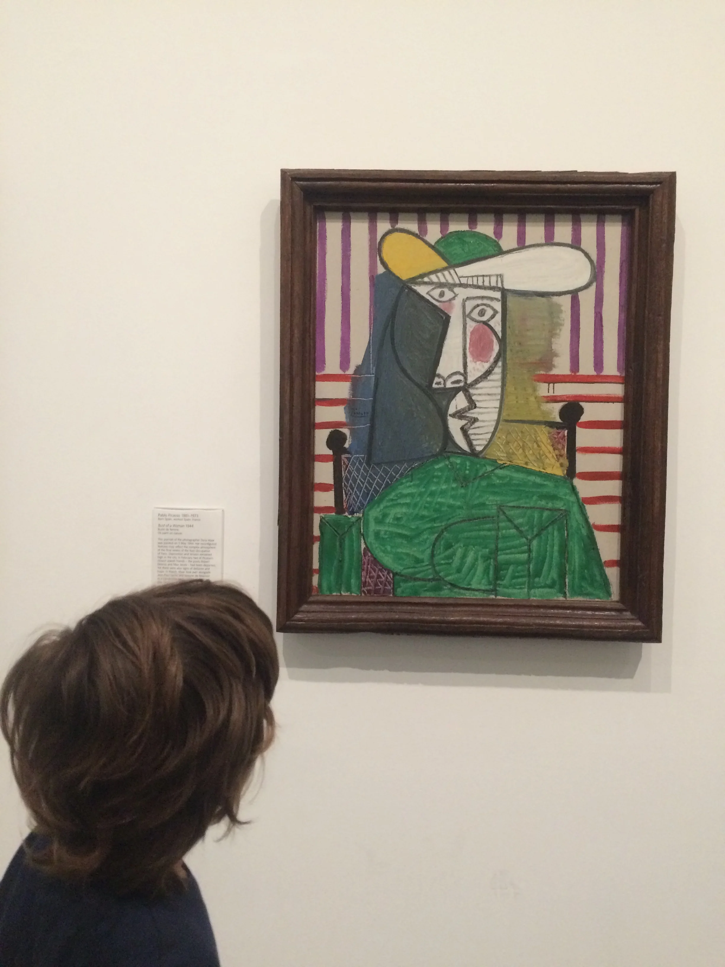 This is one of Pablo Picasso's paintings. I can't believe I could see one of his paintings! This was real, not a copy. This is a portrait. This is more of an abstract face. I don't really like the painting because he used his imagination too much. It looks funny.