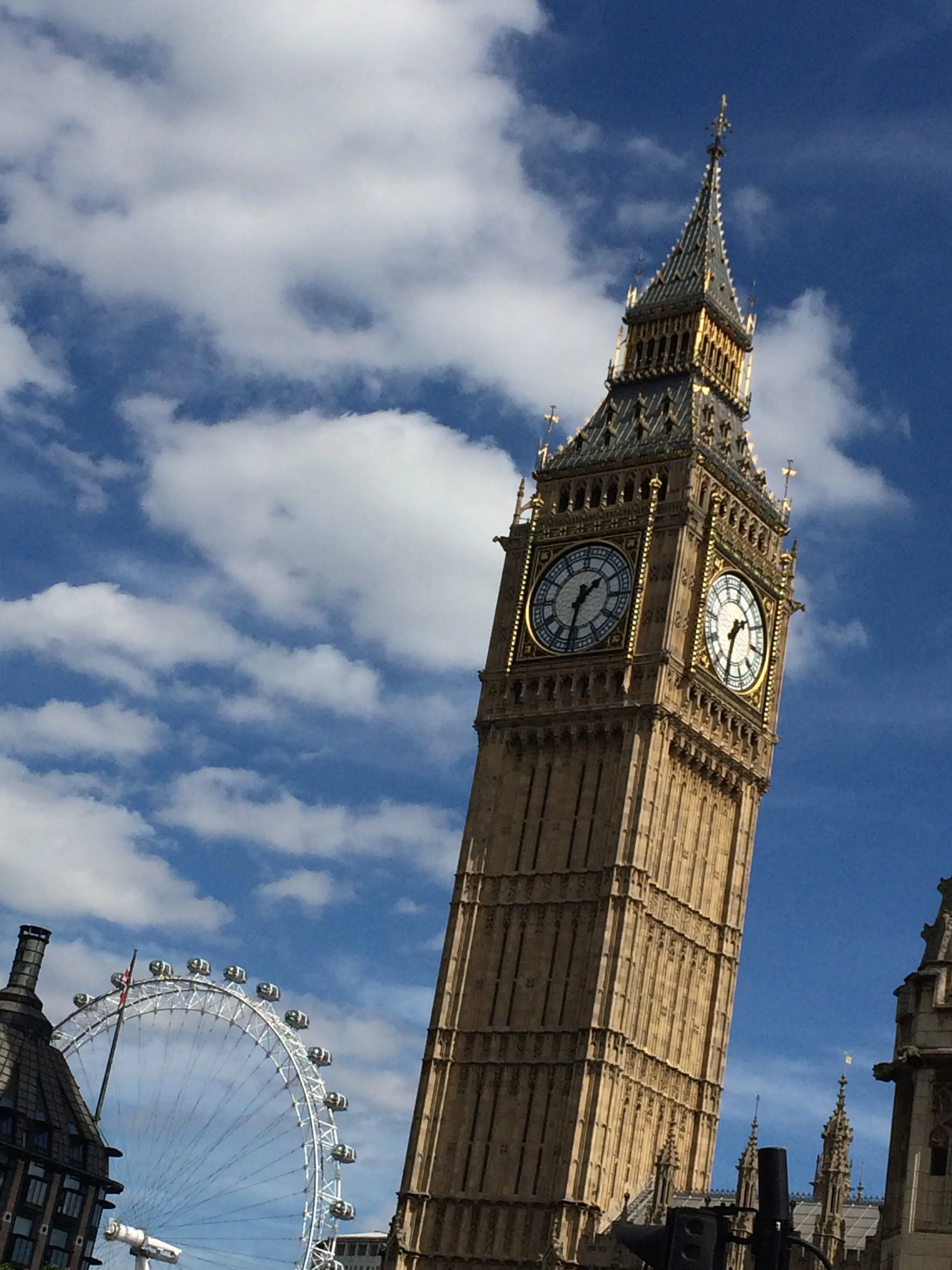 This is Big Ben and the London eye. We haven't been on the London eye yet. I thought Big ben was going to be bigger. It wasn't as big as I thought it would be.