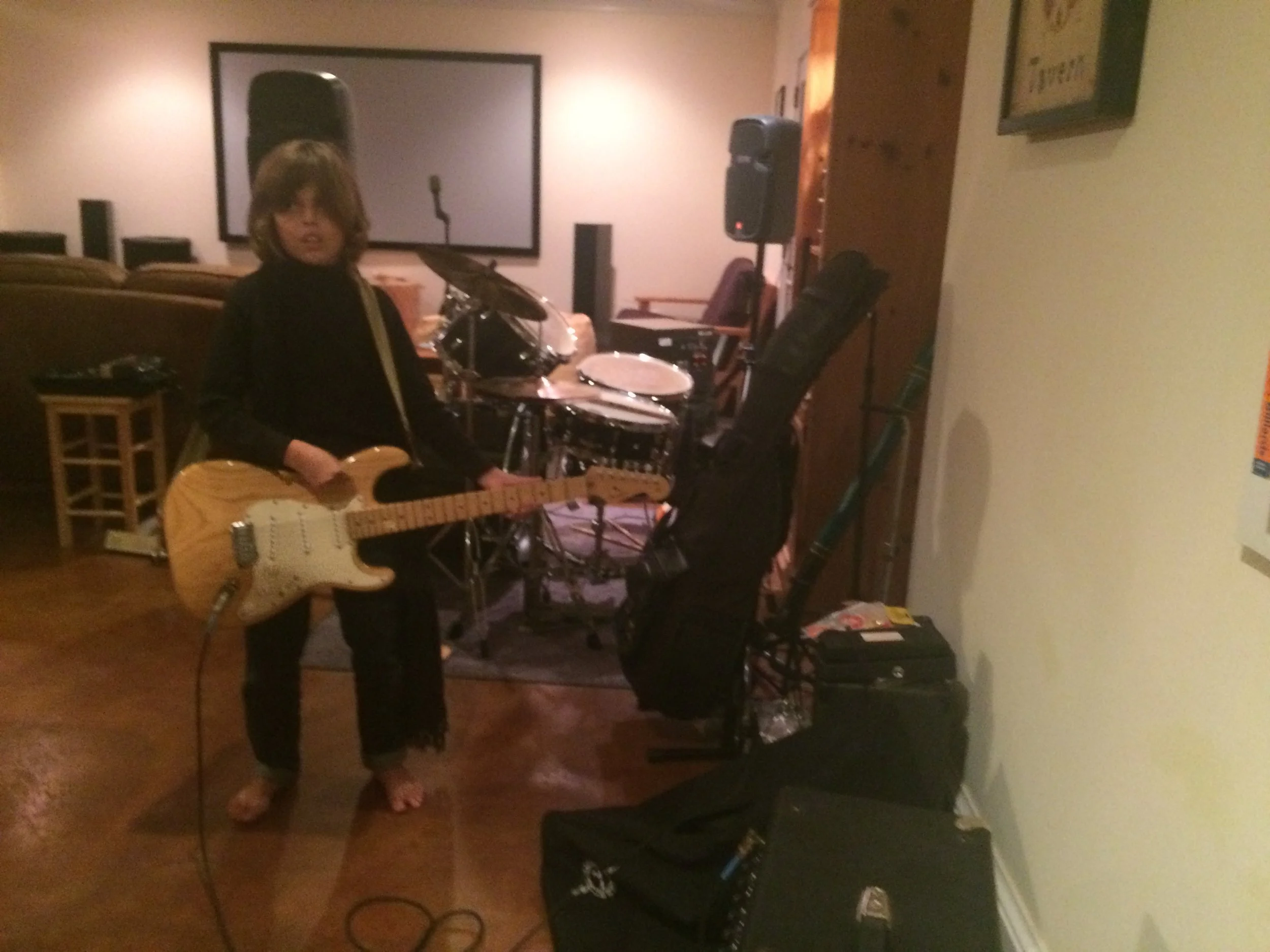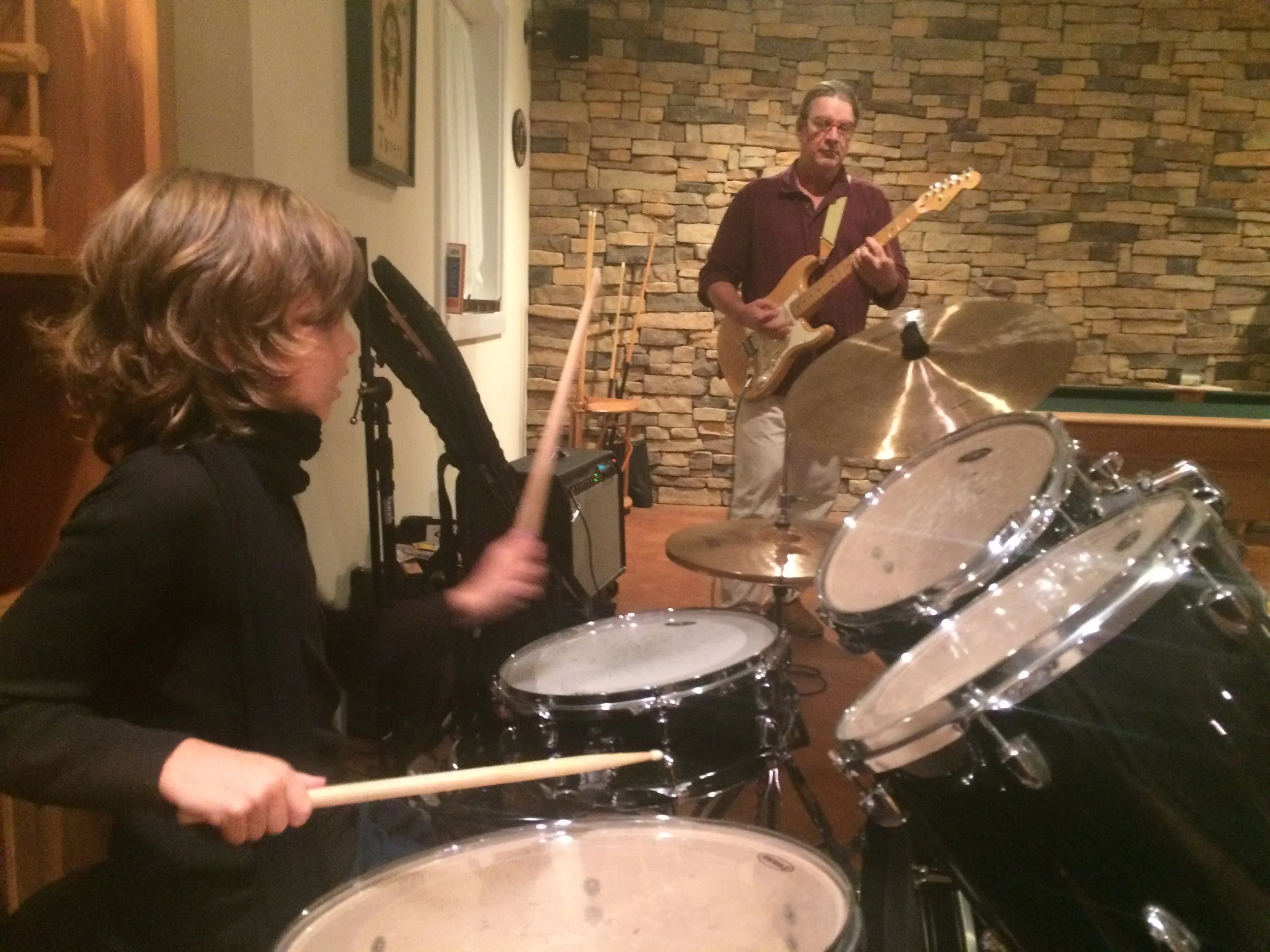 At a friends place, HB and Anne, we play rock and roll which was fun i was the best at the drums . They had a downstairs basement filled full of guitars, drums and trumpet. It was so much fun.